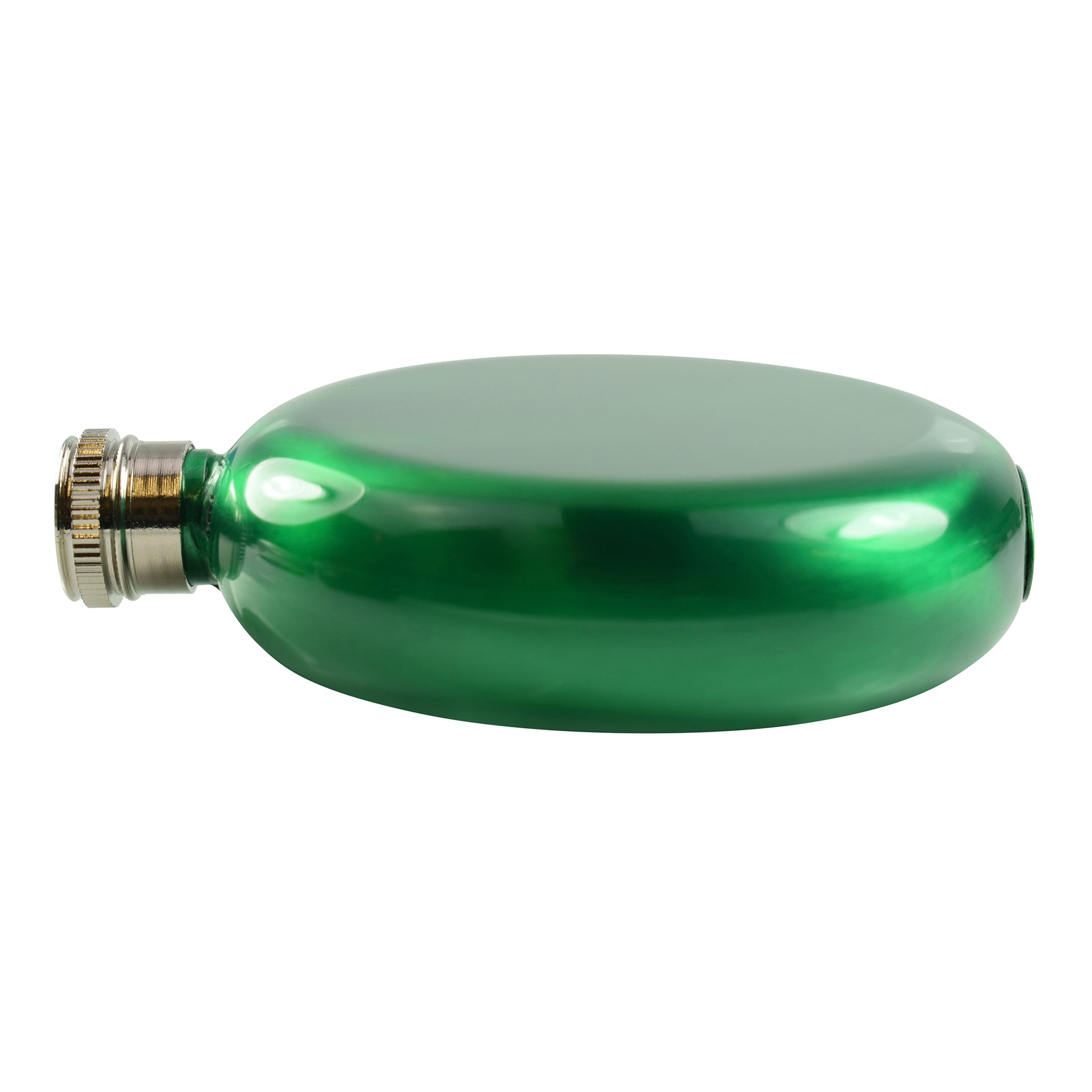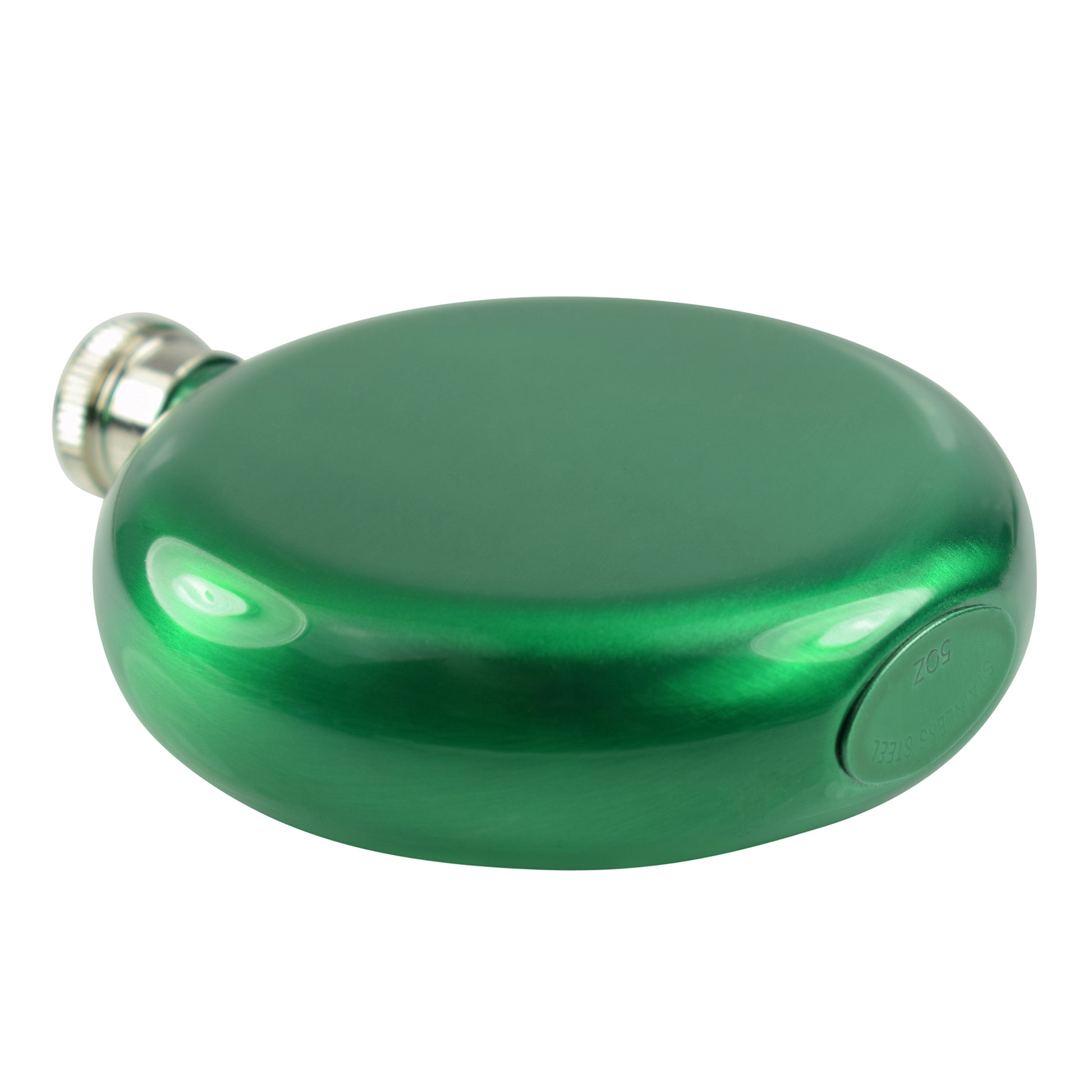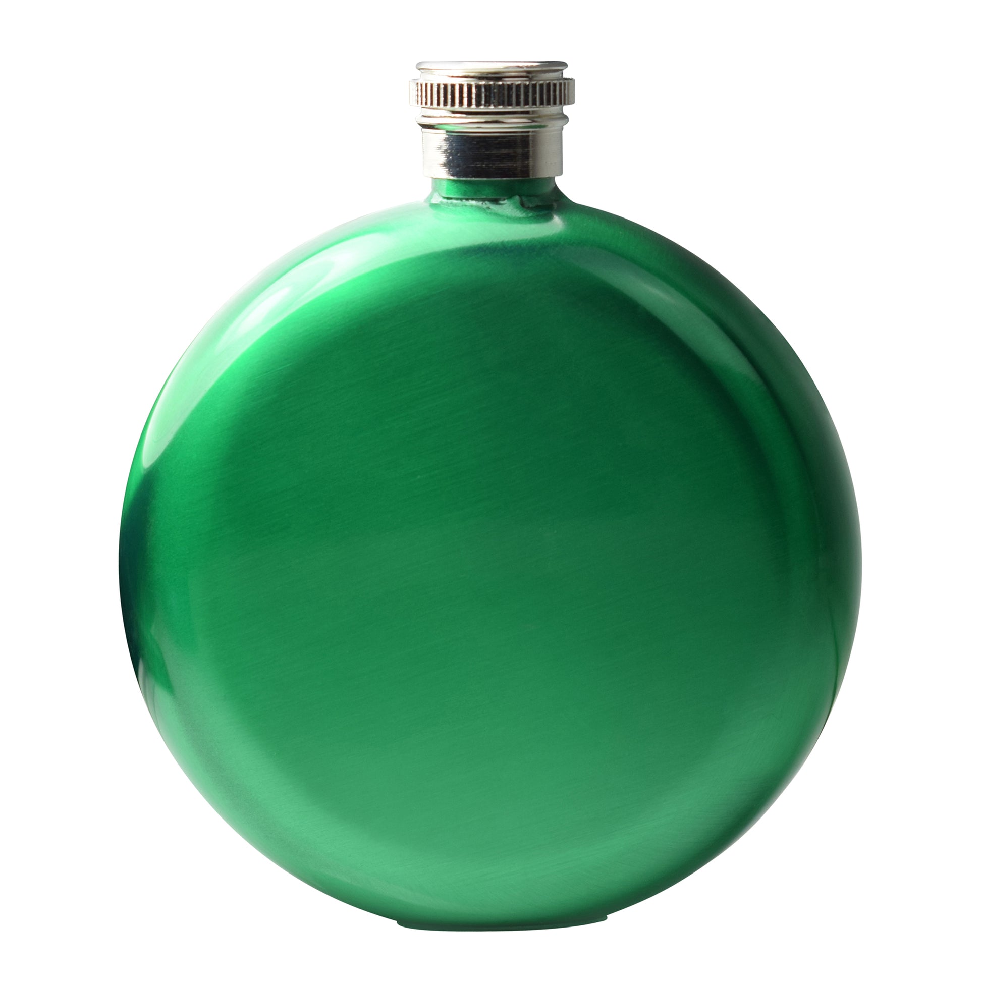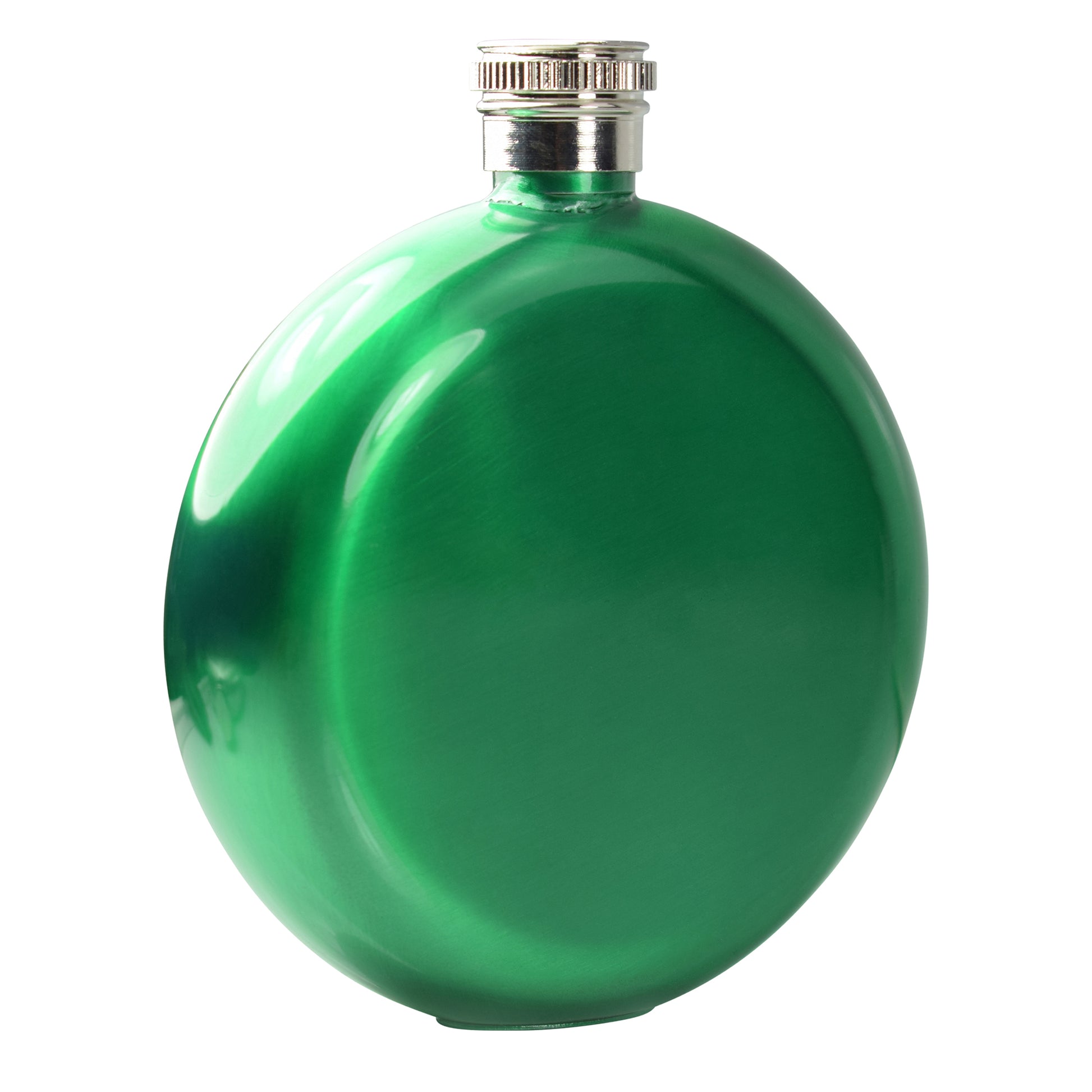 Our hip flask range has now been extended to this 5oz round flask in a fantastic bright metallic green finish, made out of tough stainless steel featuring a screw on cap.