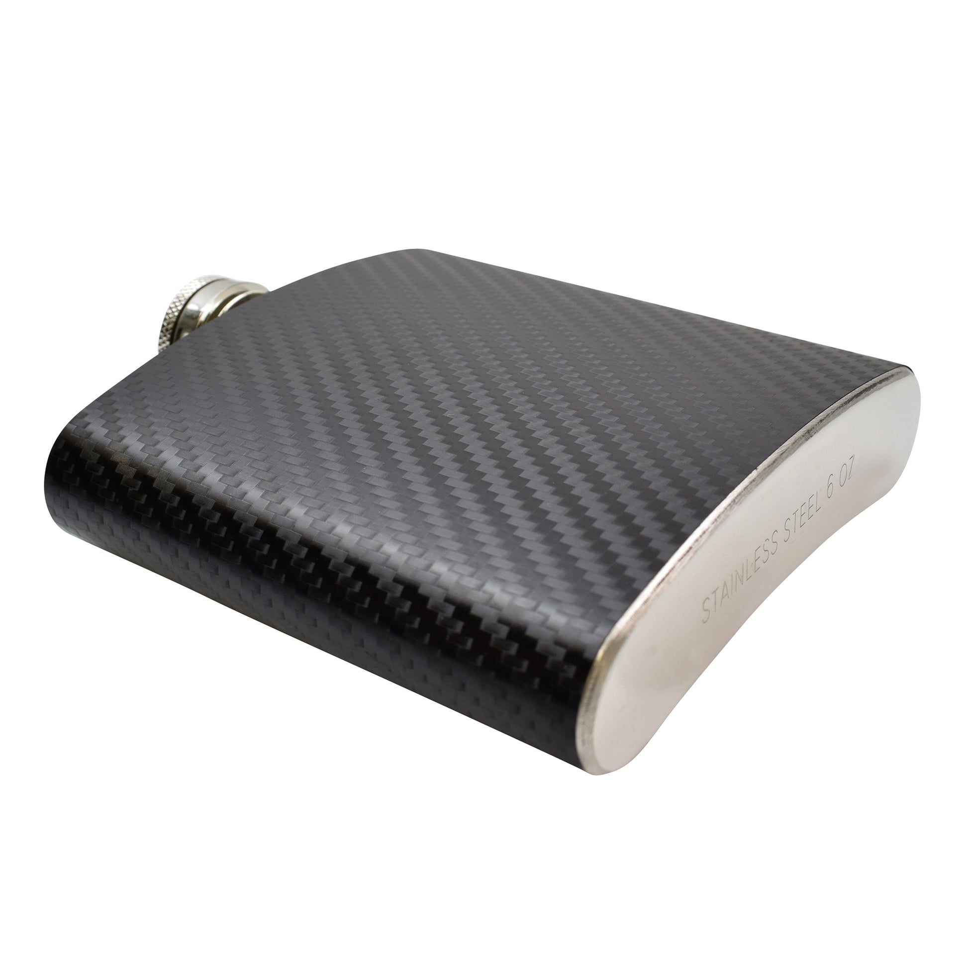 Our 6oz range has now been extended with a very attractive 6oz flask wrapped with a carbon fibre effect vinyl. Made out of tough stainless steel, featuring a captive lid.