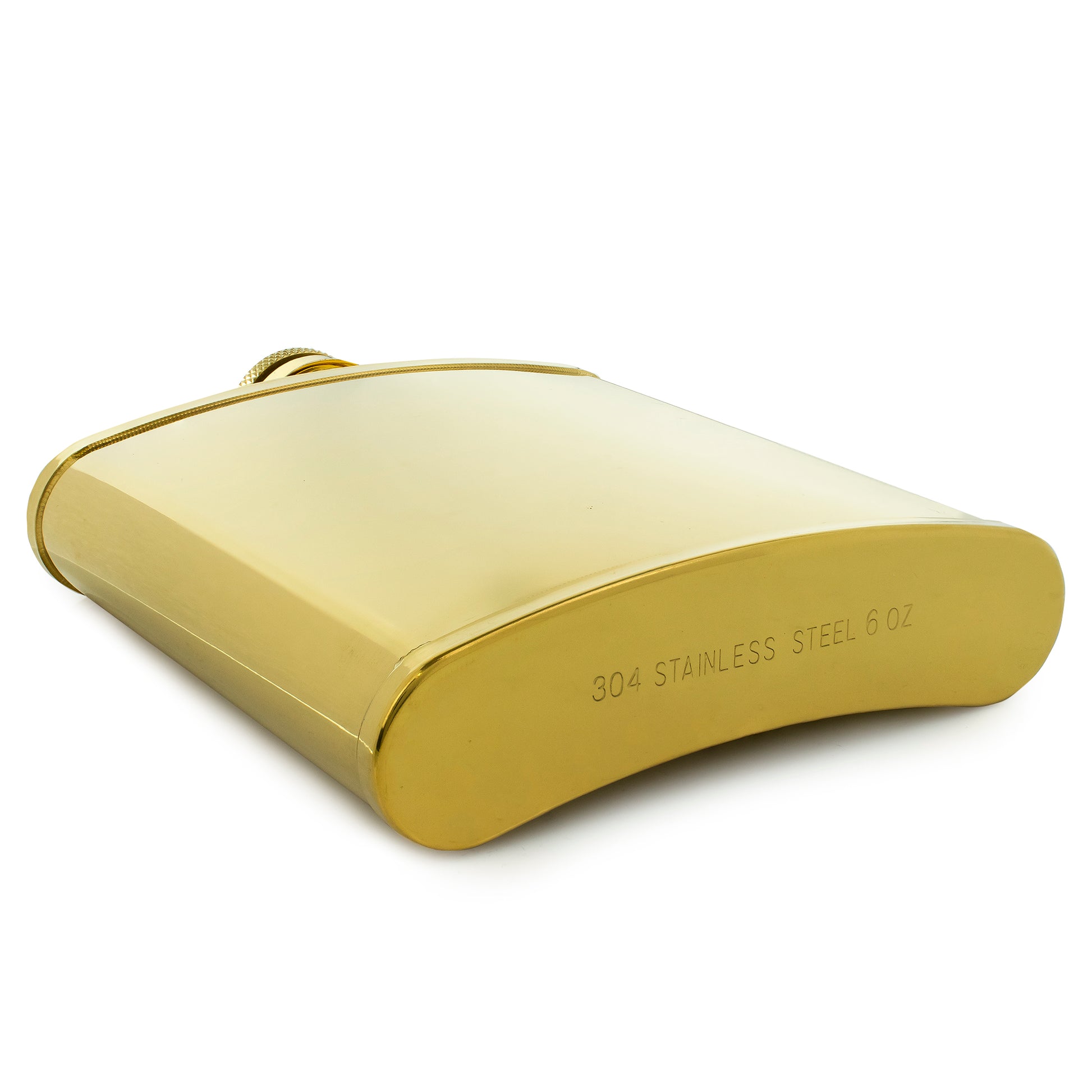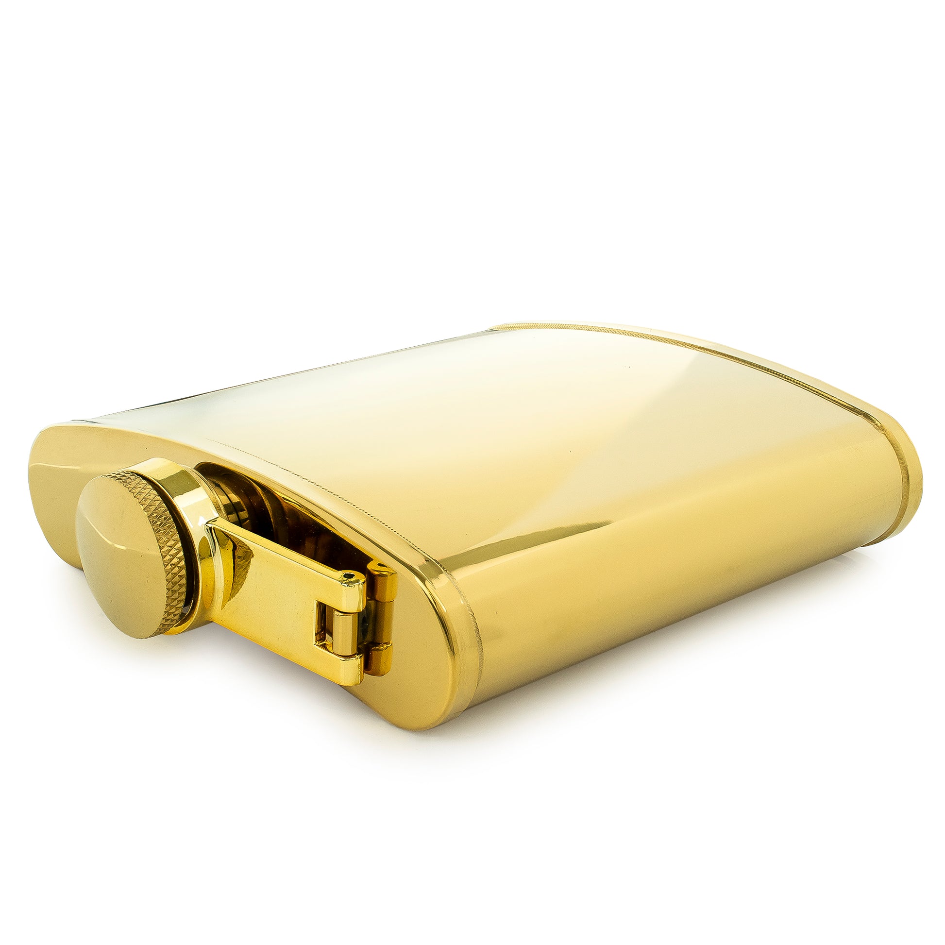 Our 6oz best selling hip flask in a lipped version, perfect for custom wrapping. In a shiny gold finish. Made out of tough stainless steel, featuring a captive lid.