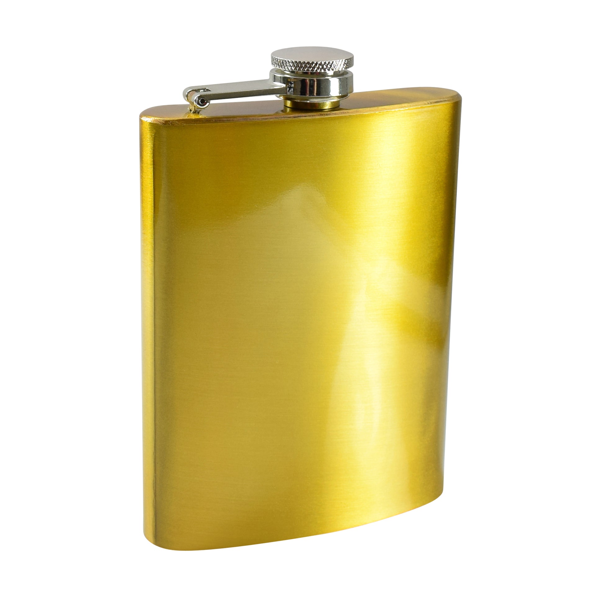 Our 8oz range now extends to a shiny metallic gold hip flask, perfect for more capacity. Made out of tough stainless steel, featuring a captive lid.