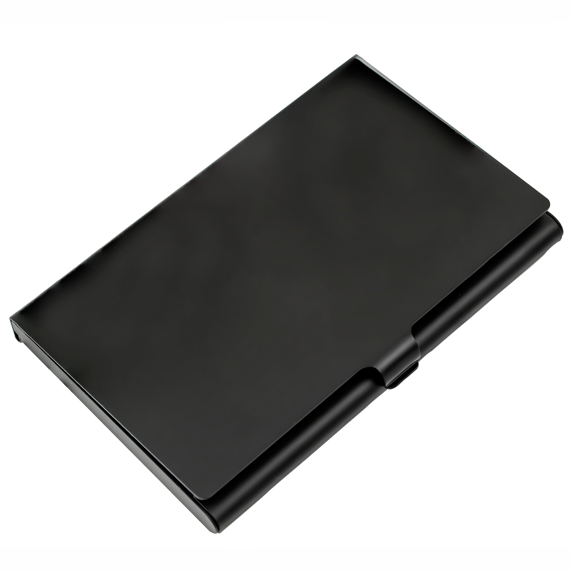 Lightweight and sturdy matt black aluminium business card holder, perfect for on the go for meetings and networking.