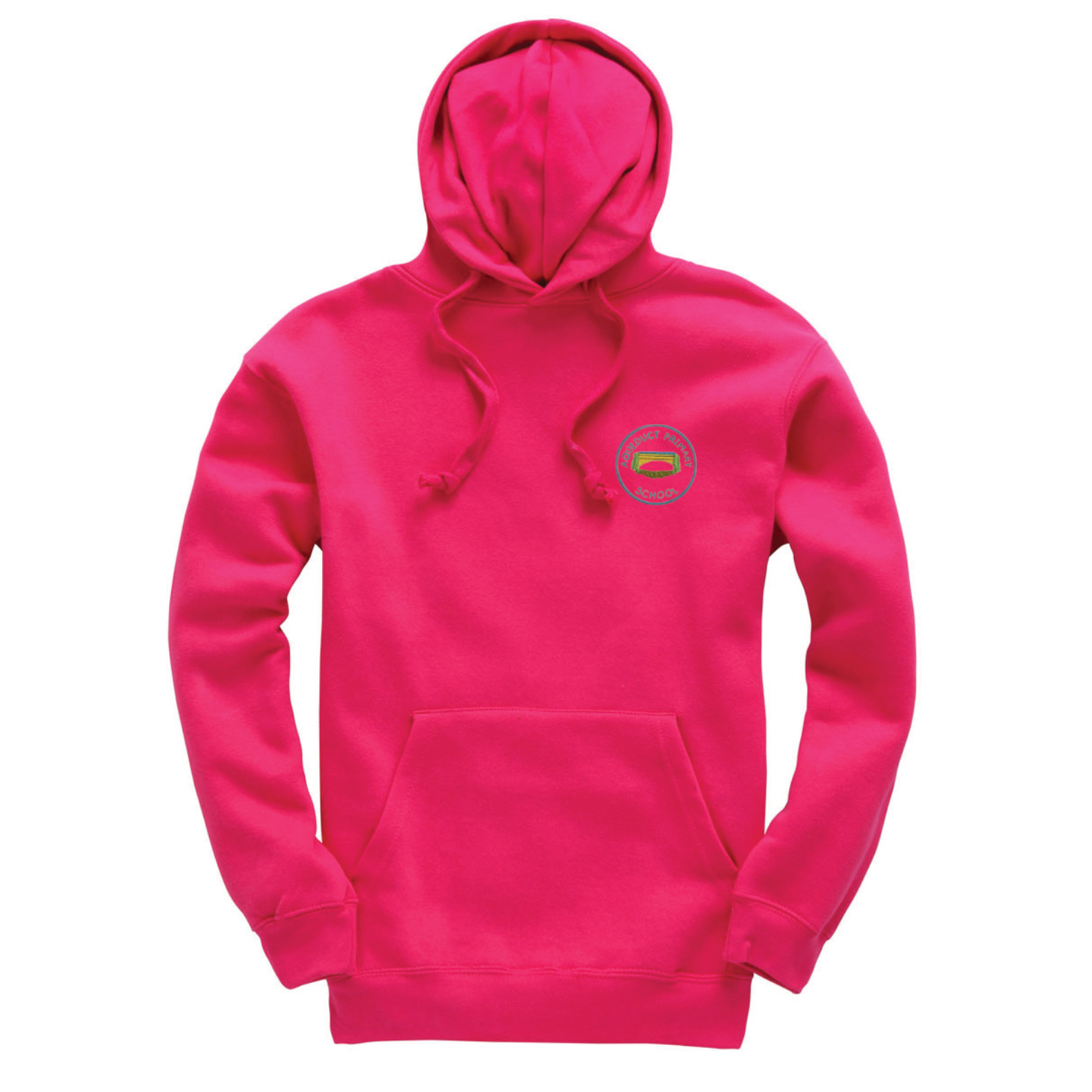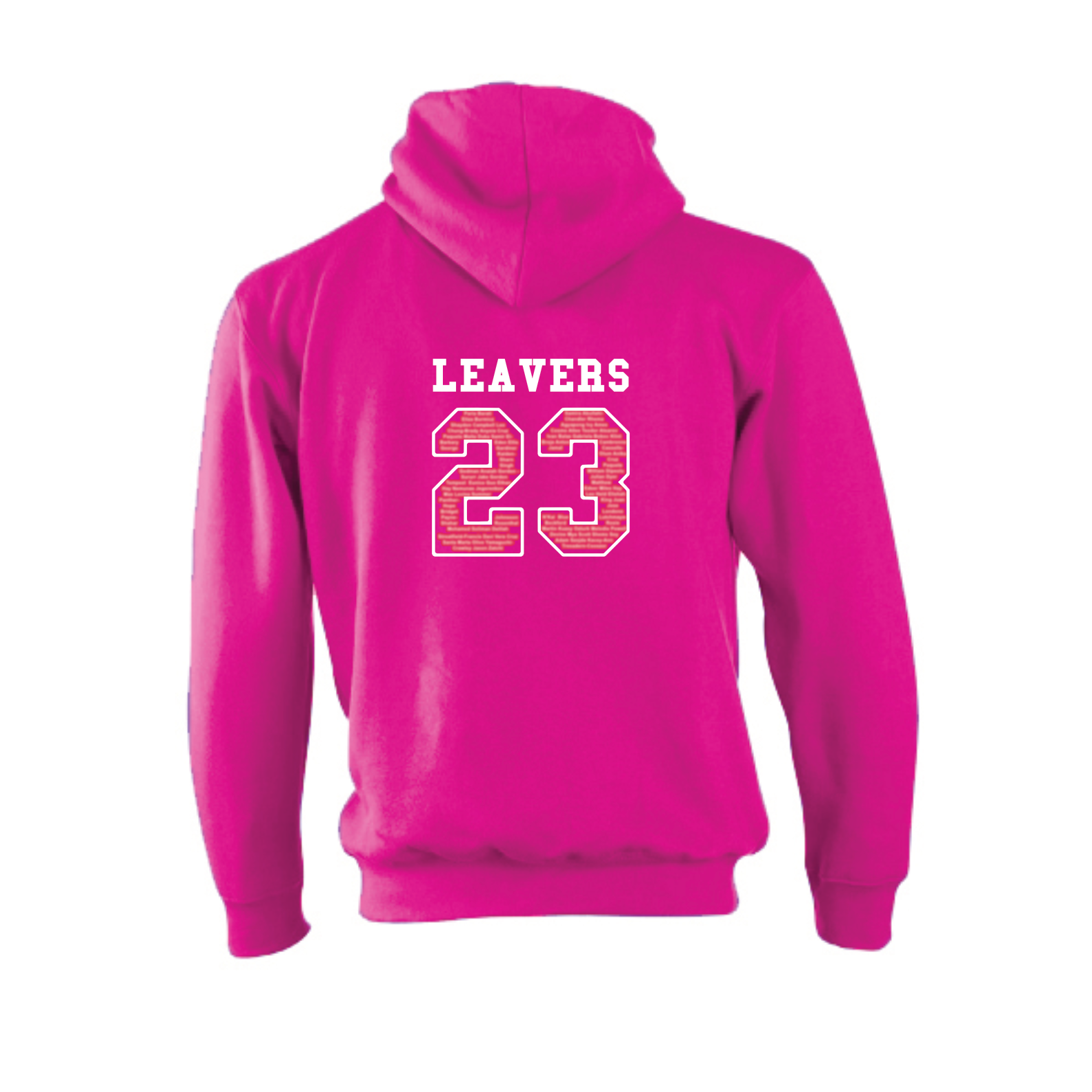 Add a pop of color to your wardrobe with our pink leavers hoodie. Featuring a double fabric hood with self-color flat hood cords, ribbed cuffs and hem, and kangaroo pouch pocket with a concealed iPod and phone pocket, it's both stylish and practical. The school logo and "Leavers 2023" print make it a perfect way to remember your time at school.
