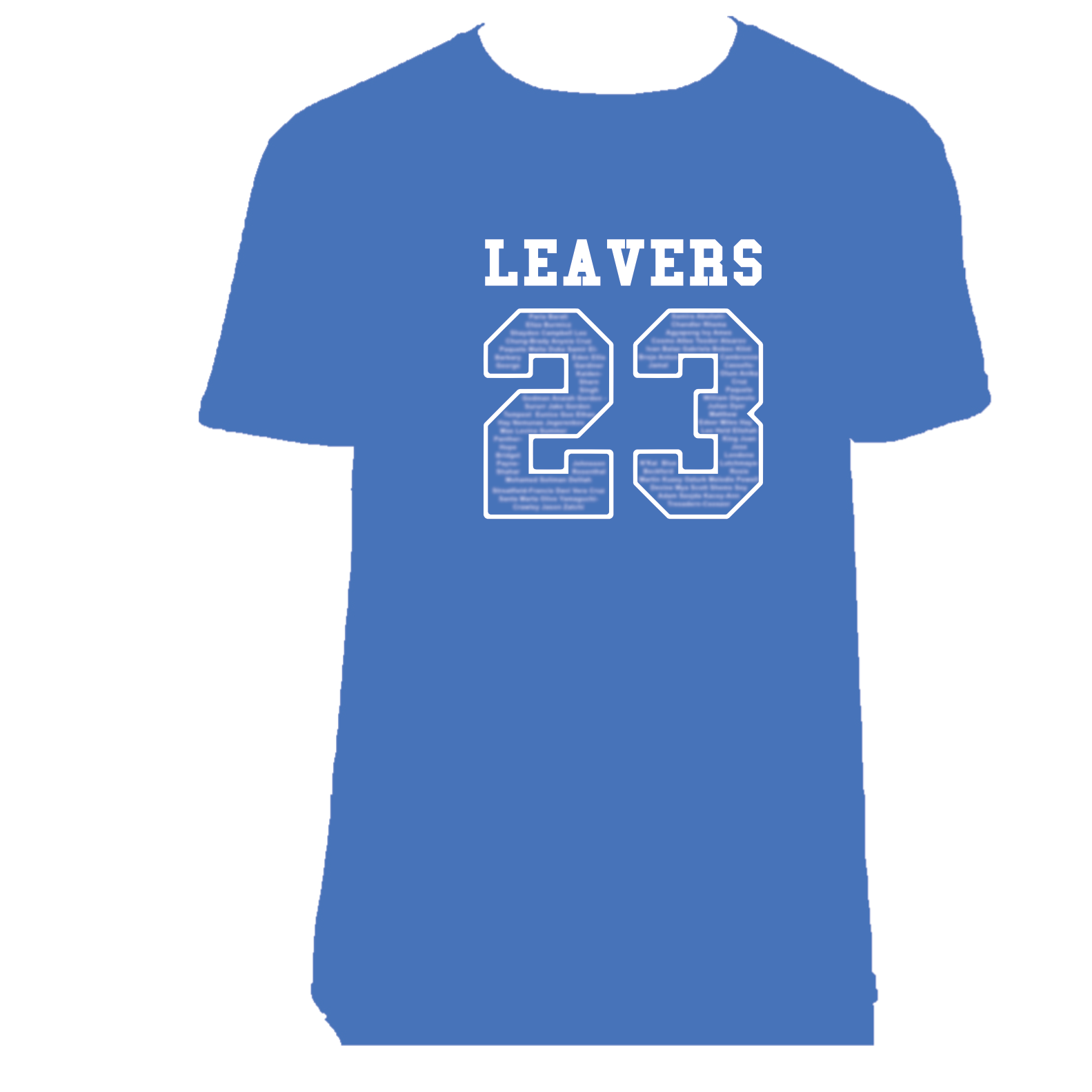 Our blue leavers t-shirt is a classic choice for anyone looking to celebrate their achievements. Crafted with the same attention to detail as our other colors, it features a modern classic fit, narrow ribbed collar, and taped neck and shoulders. The "Leavers 2023" print and your school logo make it the perfect way to remember your time at school.