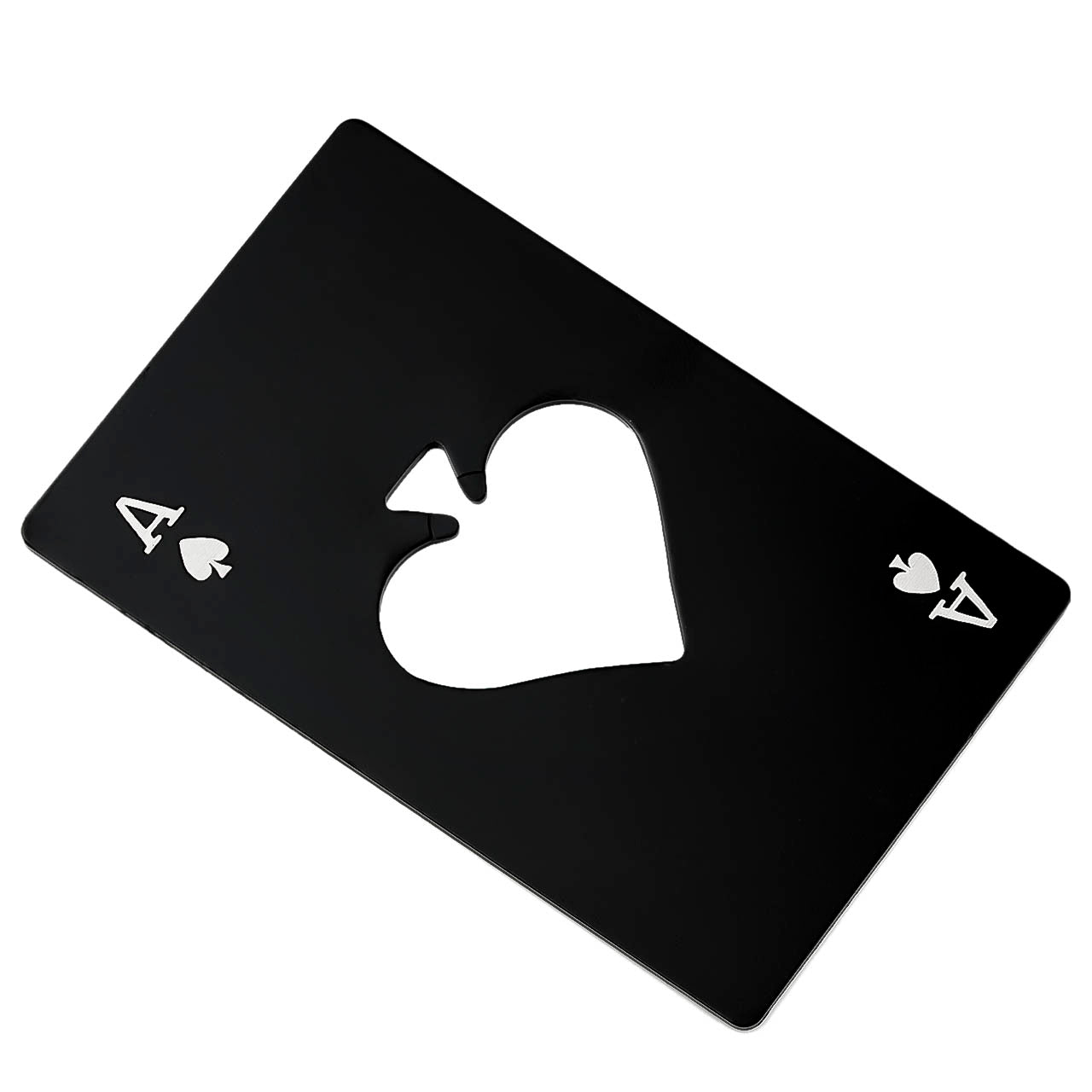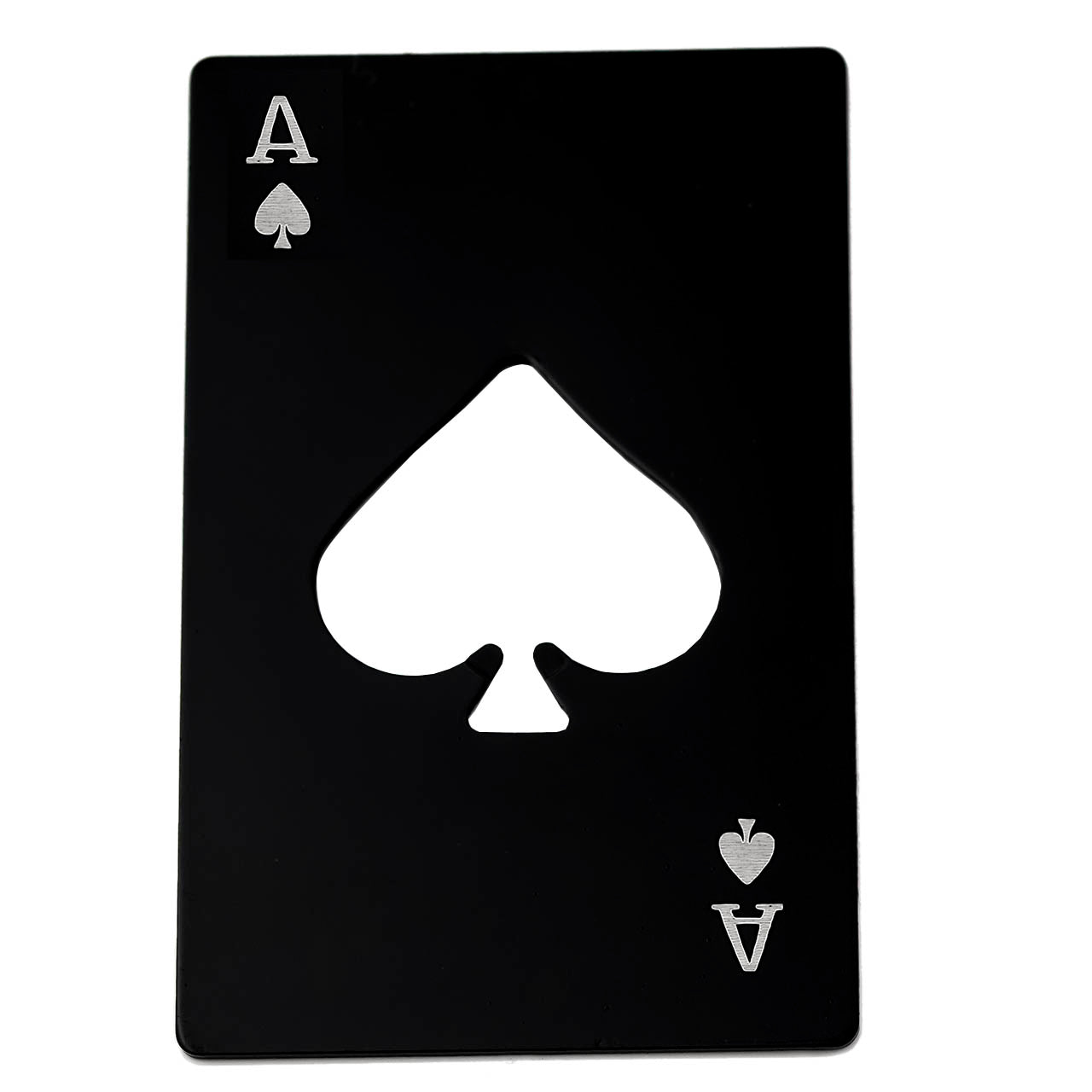An unusual but very desirable rectangular, black Ace of Spades bottle opener that is perfect for custom engraving.