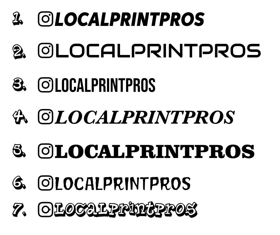 We've got a range of fonts and these will be expanded over time this is the same for colours depending on popularity.