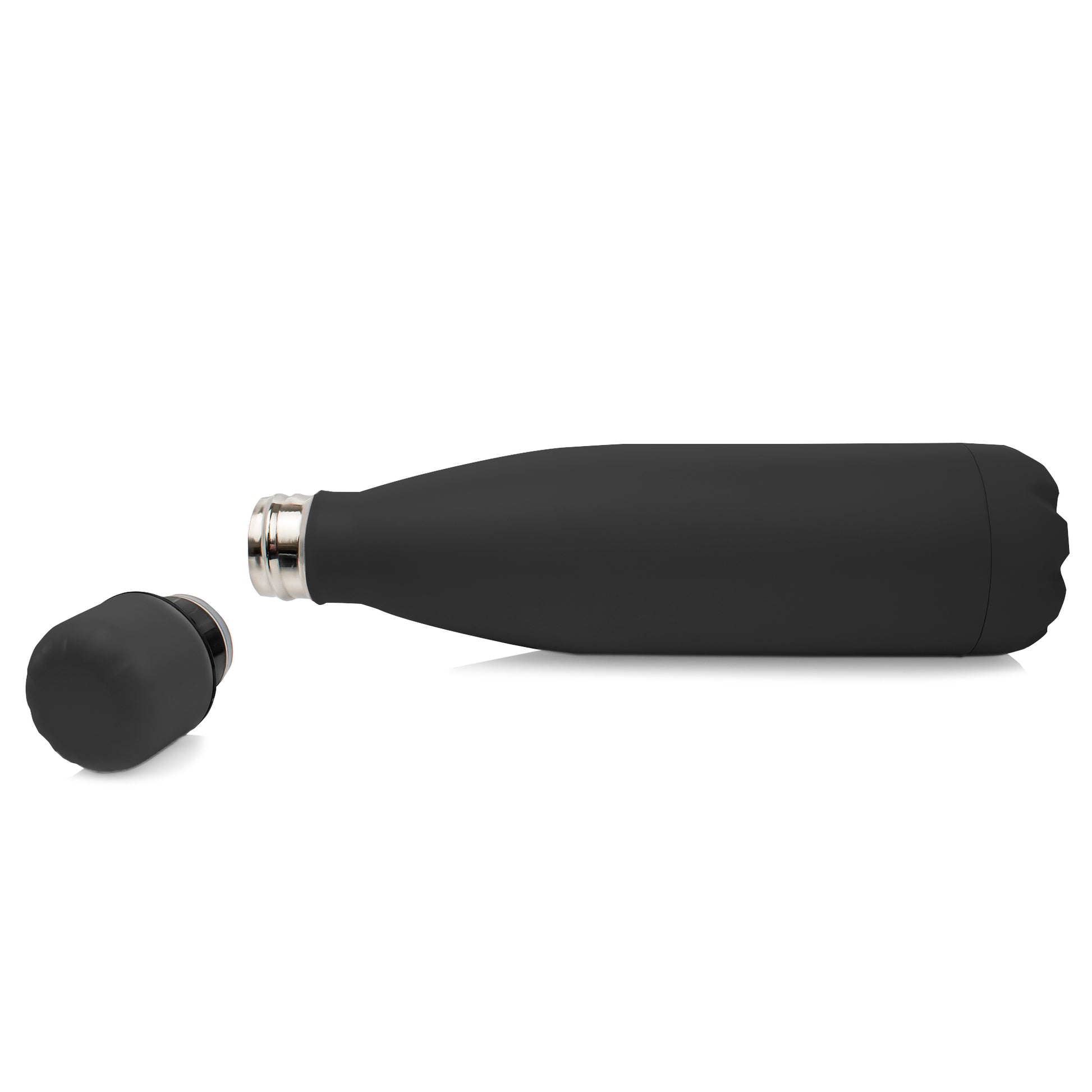Black thermal flask supplied in a white stock box. Keep your drinks cooled down up to 24 hours and 12 hot.