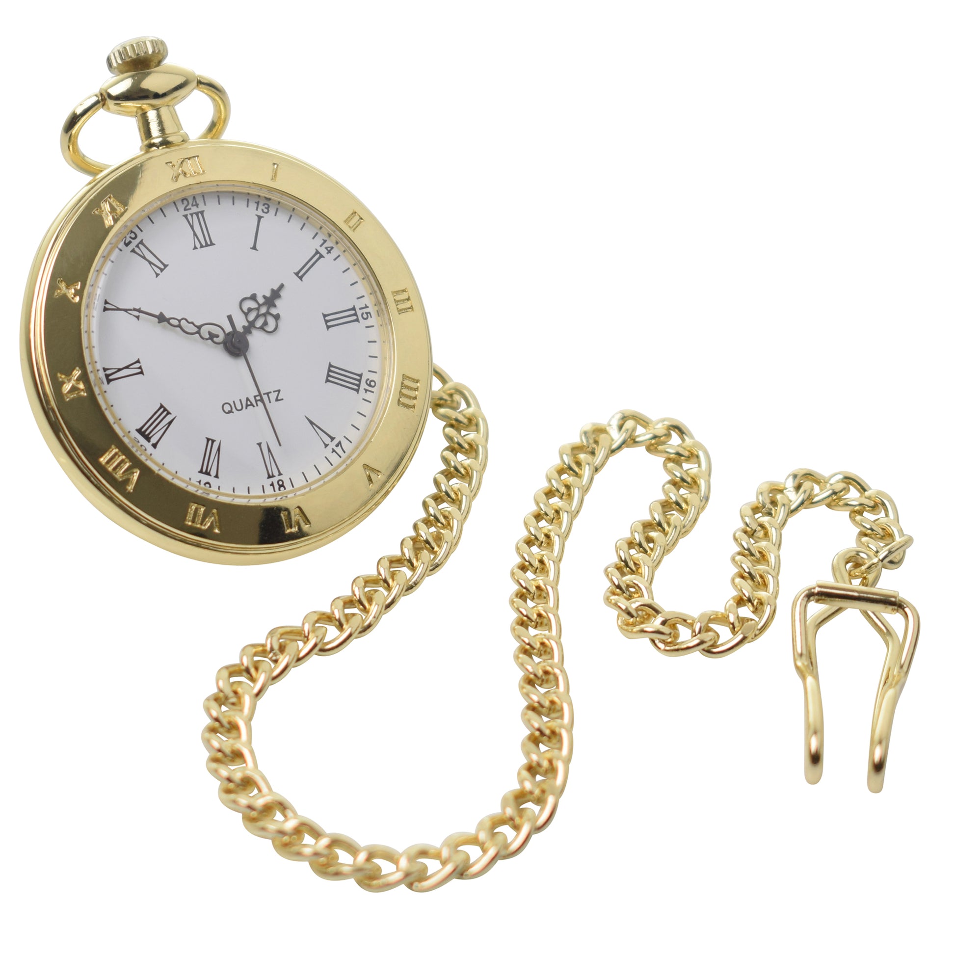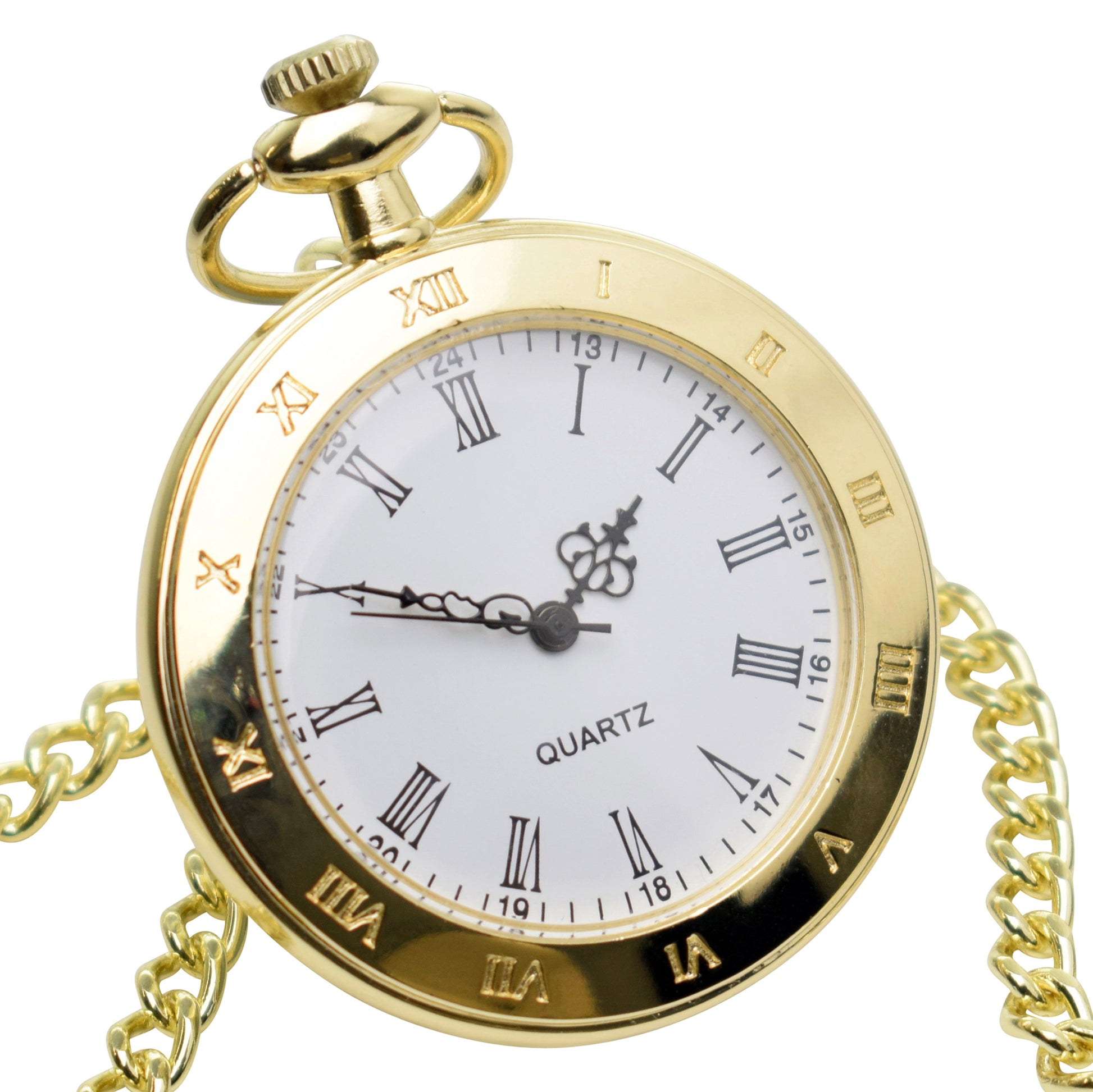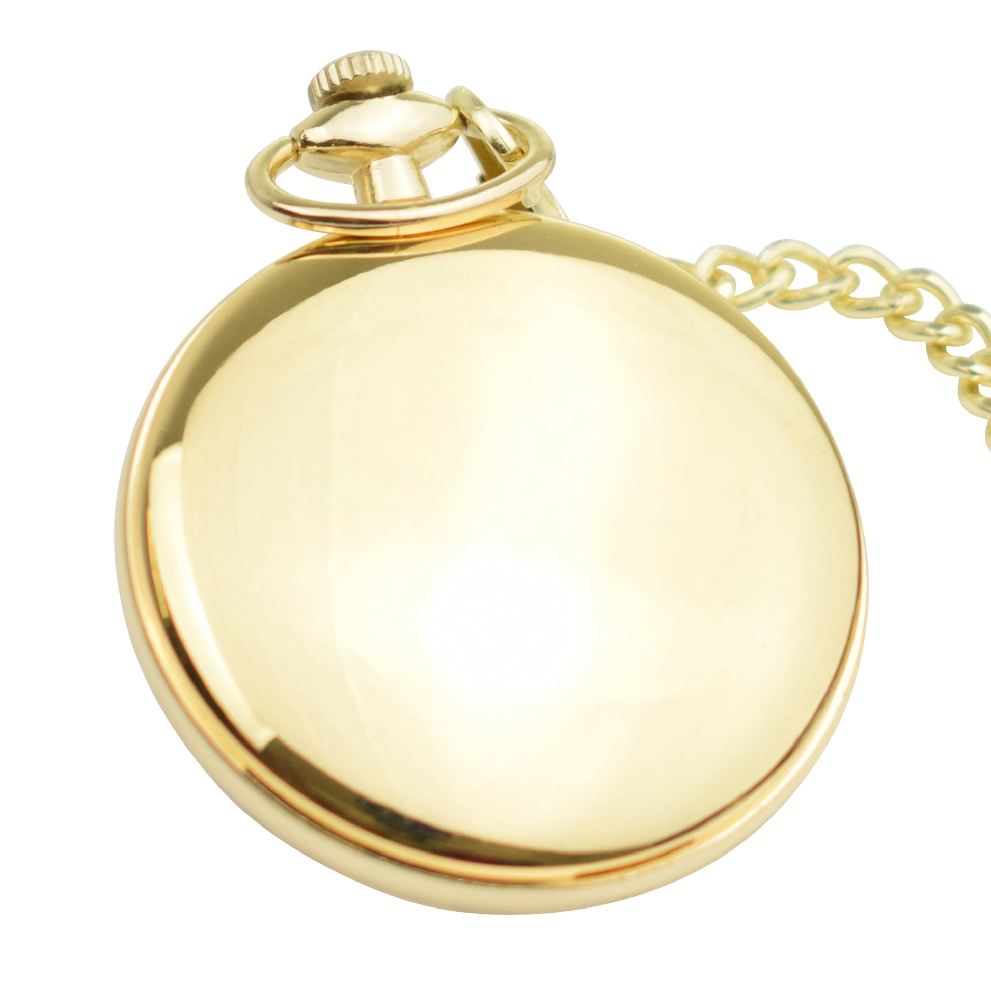 Gold-coloured pocket watch with an open front, numeral surround, and high-quality Japanese quartz movement