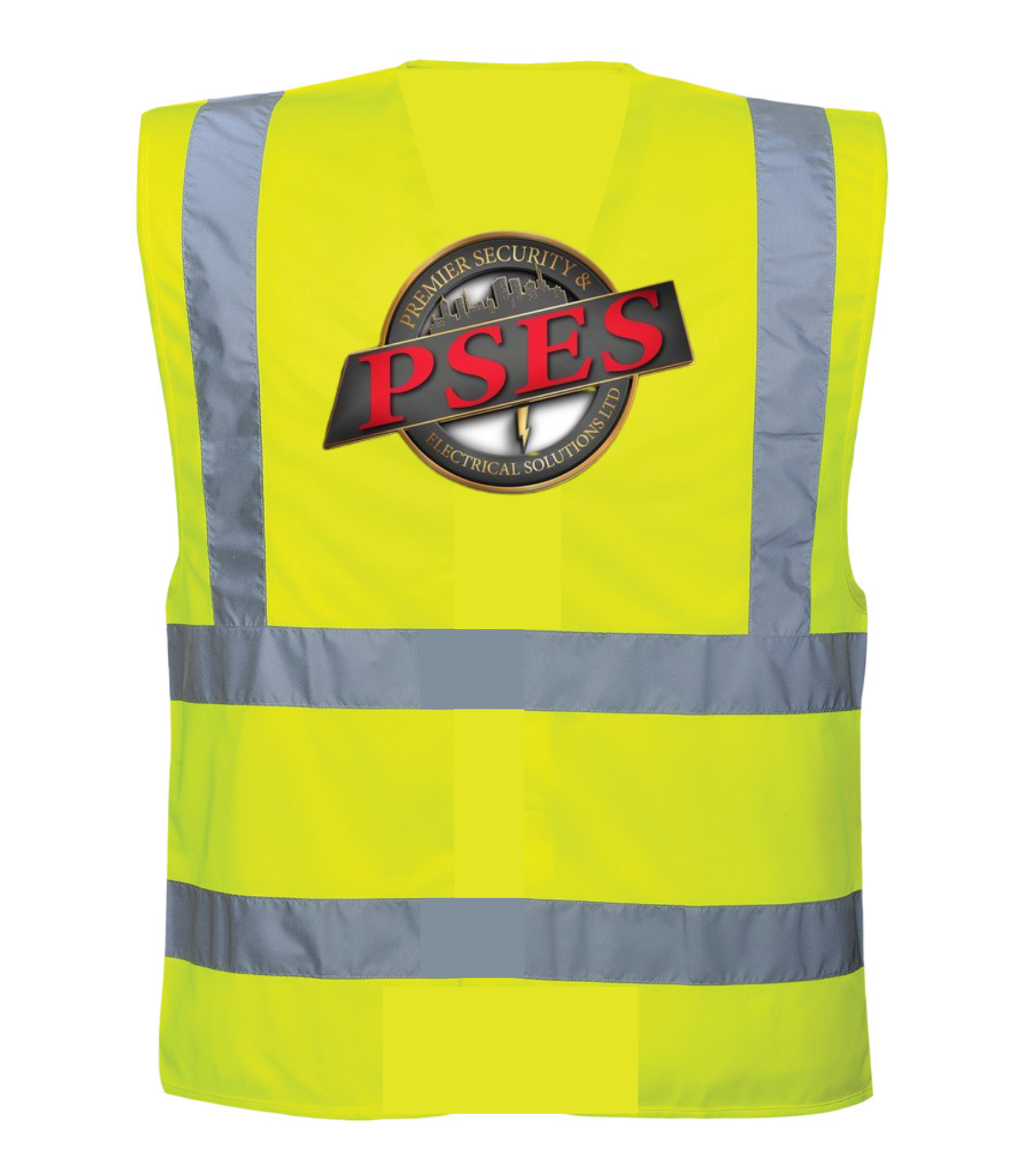 100% Polyester fabric with hook and loop fastening. Two 5cm width reflective tapes around the body and one over each shoulder.