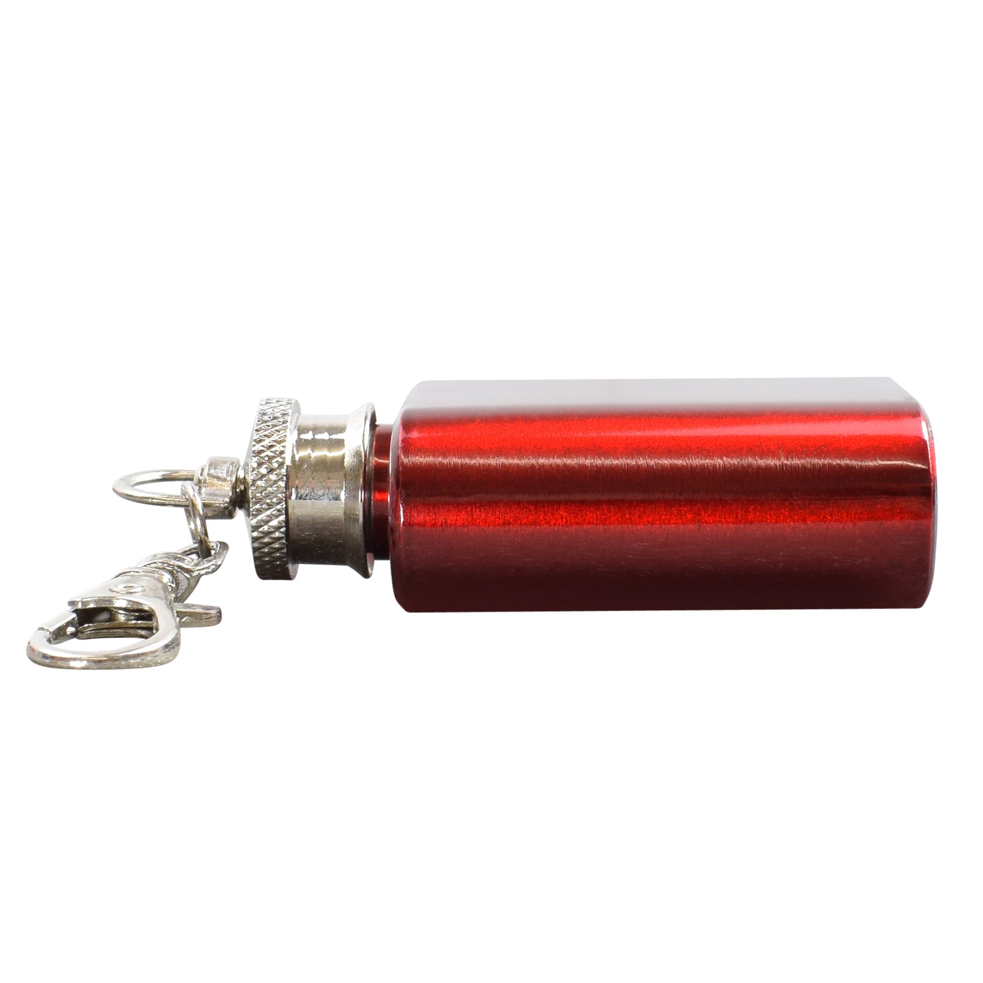 Mini hip flask keyring in metallic red, perfect for personal and promotional corporate gifts