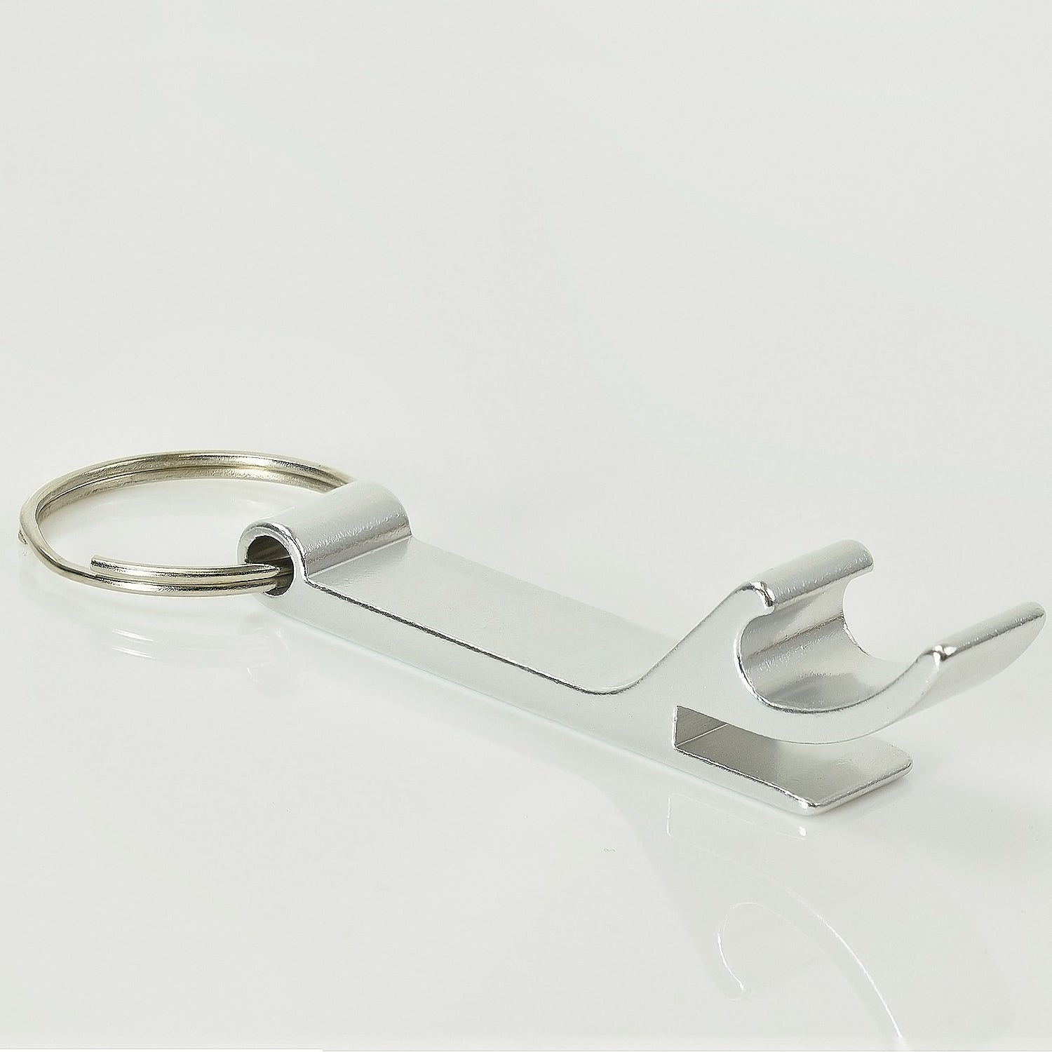 A sturdy steel bottle opener keyring which is perfect as a low cost tool to promote businesses.