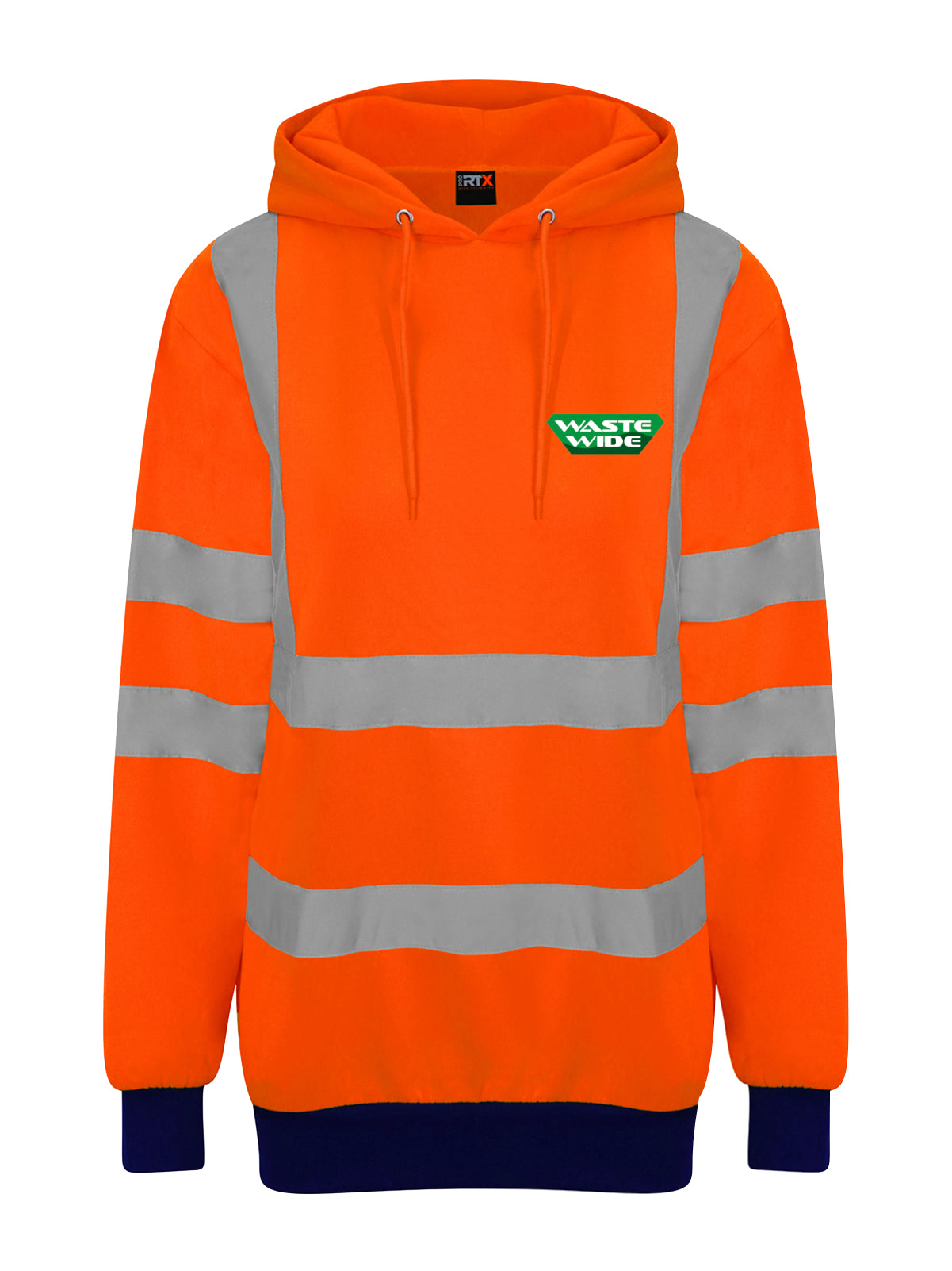 A modern workwear essential, our high visibility hoodie is practical, comfortable and warm. With a double fabric hood and adjustable drawcords, this is a key piece to see you though any season. The contrast colour hem and cuff creates a stylish yet practical finish.